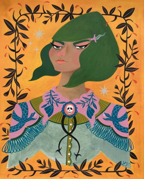 Lexi Villasana is a San Francisco based artist primarily working in gouache, watercolor, and colored pencil. Her work revolves around magic, mystery, and melancholy. She is partial to portraiture and intimate narratives of niche moments. She pulls inspiration from ghost stories, anxious thoughts, and song lyrics about heartbreak. Her work holds an underlying sadness, isolation, or rot behind a pretty veneer of opulence and frivolity.